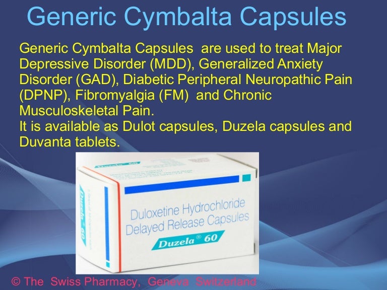 Oct 19, 2020 · our cymbalta side effects drug center provides a comprehensive view of available drug information on the potential side effects when taking this medication. this is not a complete list of side effects and others may occur. call your doctor for medical advice about side effects. cymbalta side effects you may report side effects to fda at 1-800-fda-1088. Cymbalta (duloxetine) is a selective serotonin and norepinephrine reuptake inhibitor (snri) antidepressant used to treat major depressive disorder, generalized anxiety disorder, diabetic peripheral neuropathic pain, fibromyalgia, and chronic musculoskeletal pain. common side effects of cymbalta include nausea, dry mouth, constipation, diarrhea, fatigue, difficulty sleeping, and dizziness, and.